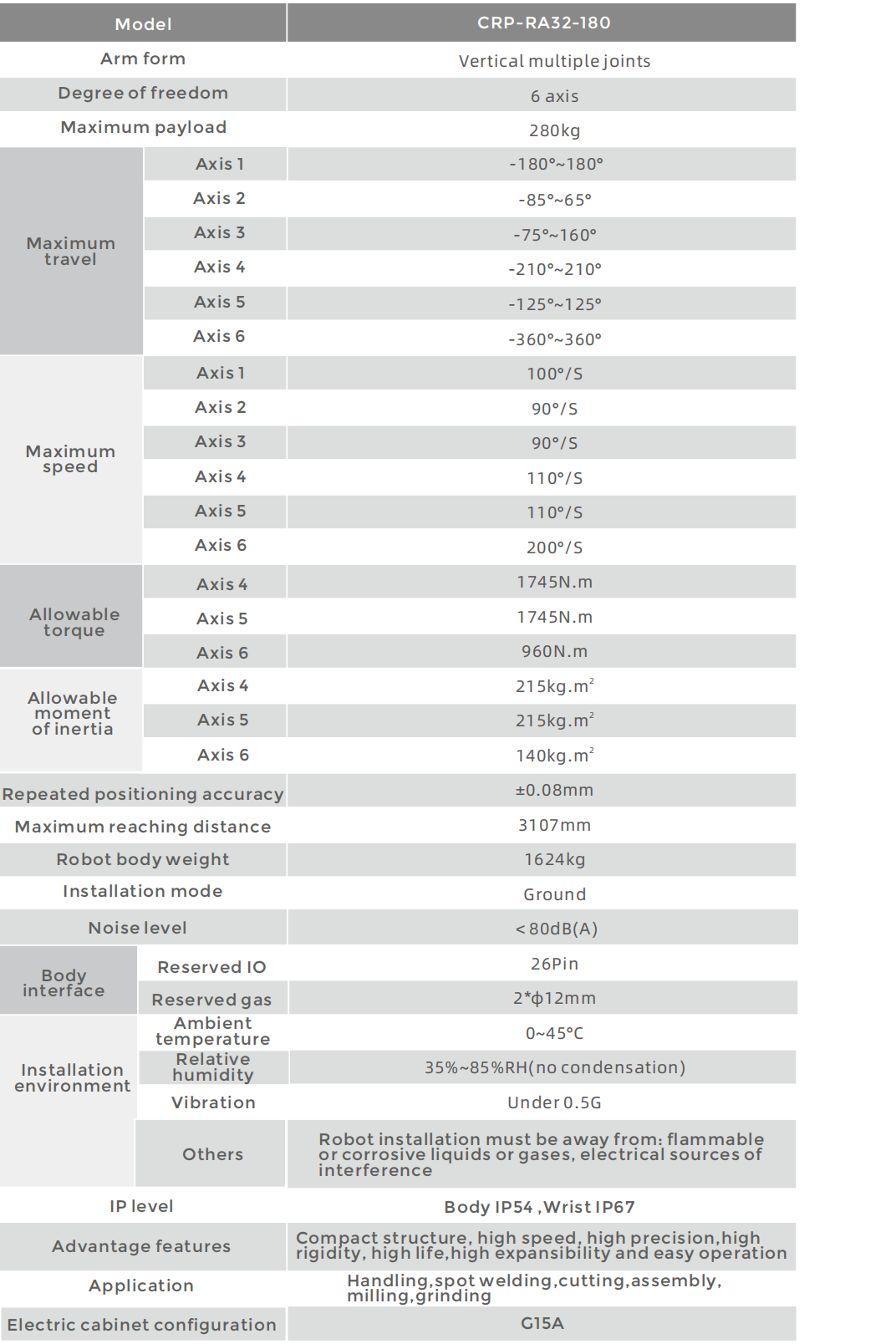 • Speed, high overload capacity servo motor, high precision RV reducer and the latest anti-vibration control strategy,shorten the pitch operation time.